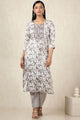 Dhiyona SO Women's Floral Printed Thread Work Round Neck Straight Kurta With Trousers