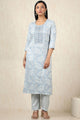 Dhiyona SO Women's Floral Printed Thread Work Straight Kurta With Trousers
