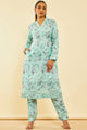 Turquoise blue printed Kurta with Trousers