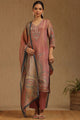 Dhiyona SO Women's Floral Printed V-Neck Beads And Stones Straight Kurta With Trousers And Dupatta