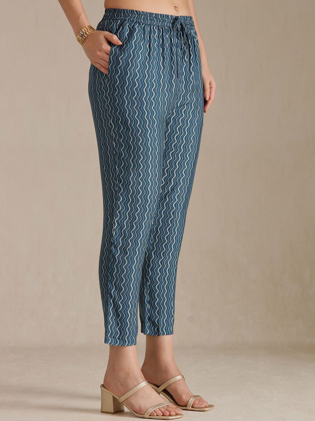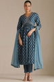 Dhiyona SO Women's Floral Printed V-Neck Empire Sequinned A-Line Kurta With Trouser And Dupatta