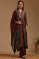Maroon,yellow and green printed kurta with palazzos and dupatta