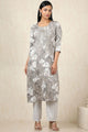 Grey and white printed kurta with trousers