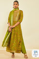 Green & gold toned kurta & trousers with dupatta