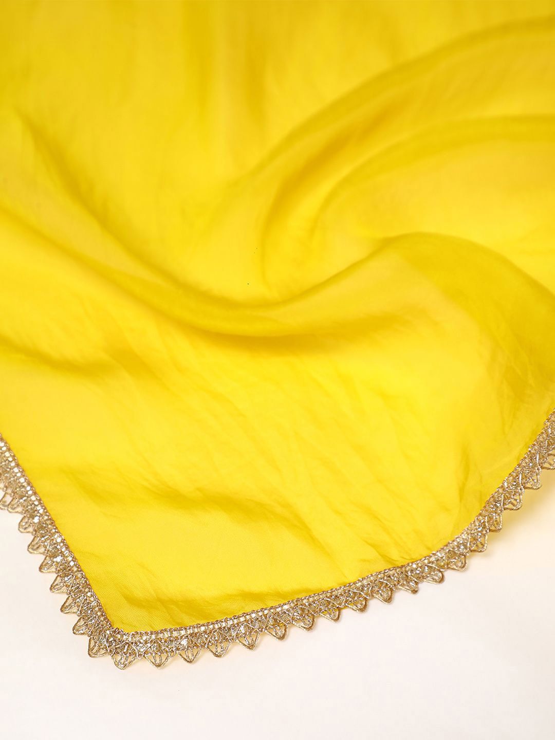 Mustard yellow woven design Kurta with Trouser with Dupatta