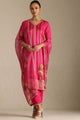 Fuchsia, gold-toned and green woven design kurta with trousers and dupatta