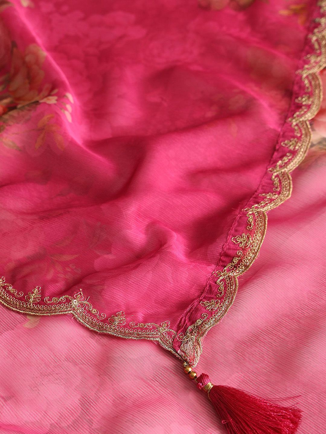 Dhiyona SO Women's Floral Woven Design V-Neck Sequinned Straight Kurta With Trousers And Dupatta