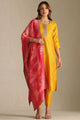 Mustard, gold-toned and pink woven design kurta with trousers and dupatta