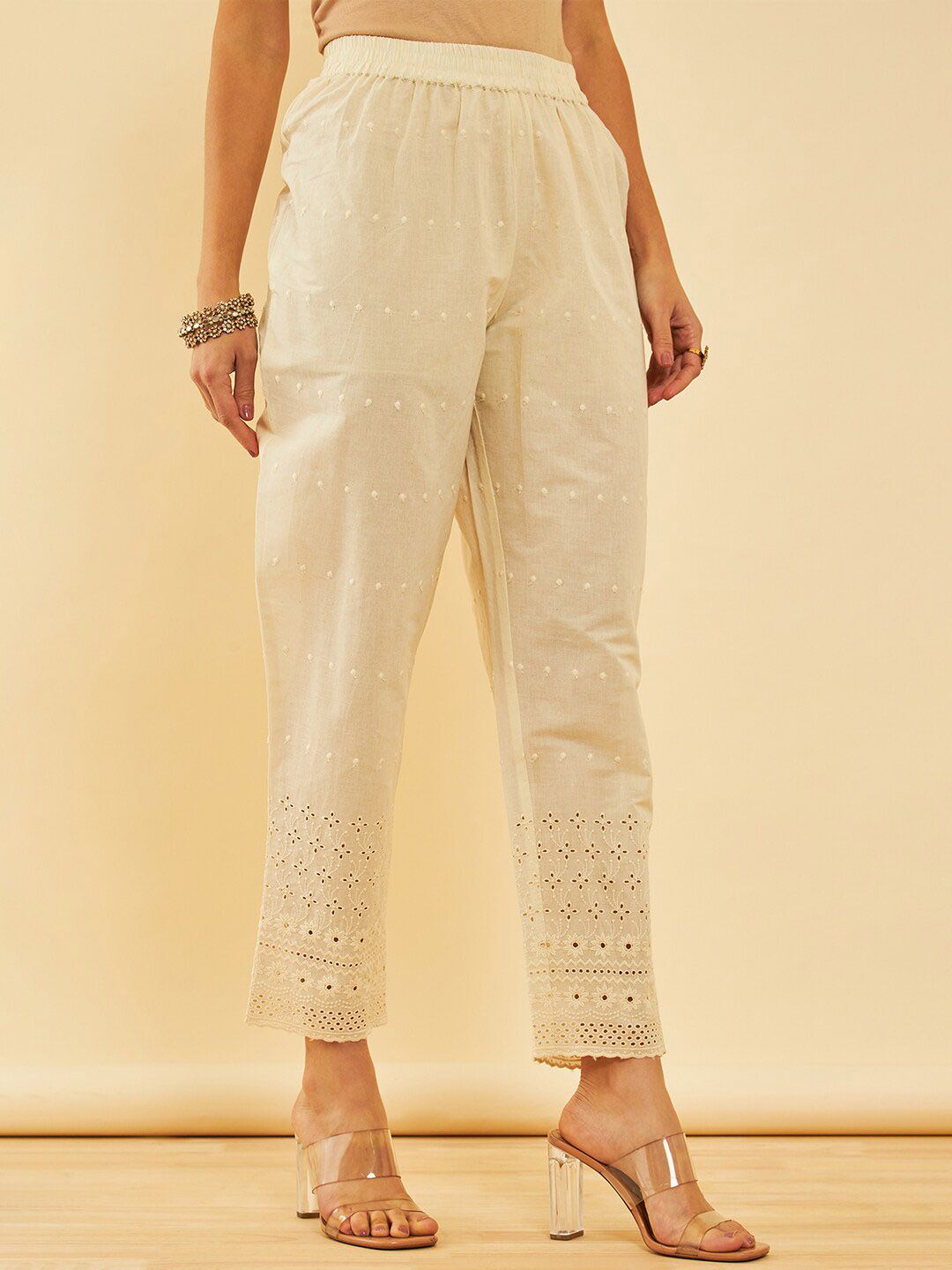 Dhiyona SO Women's Floral Yoke Design Regular Thread Work Kurta with Palazzos