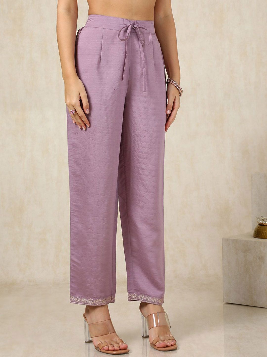Purple & silver Toned Embroidered Kurta with Palazzos