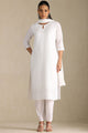 Dhiyona SO Women's Geometric Self Design Keyhole Neck Straight Kurta With Trousers & Dupatta