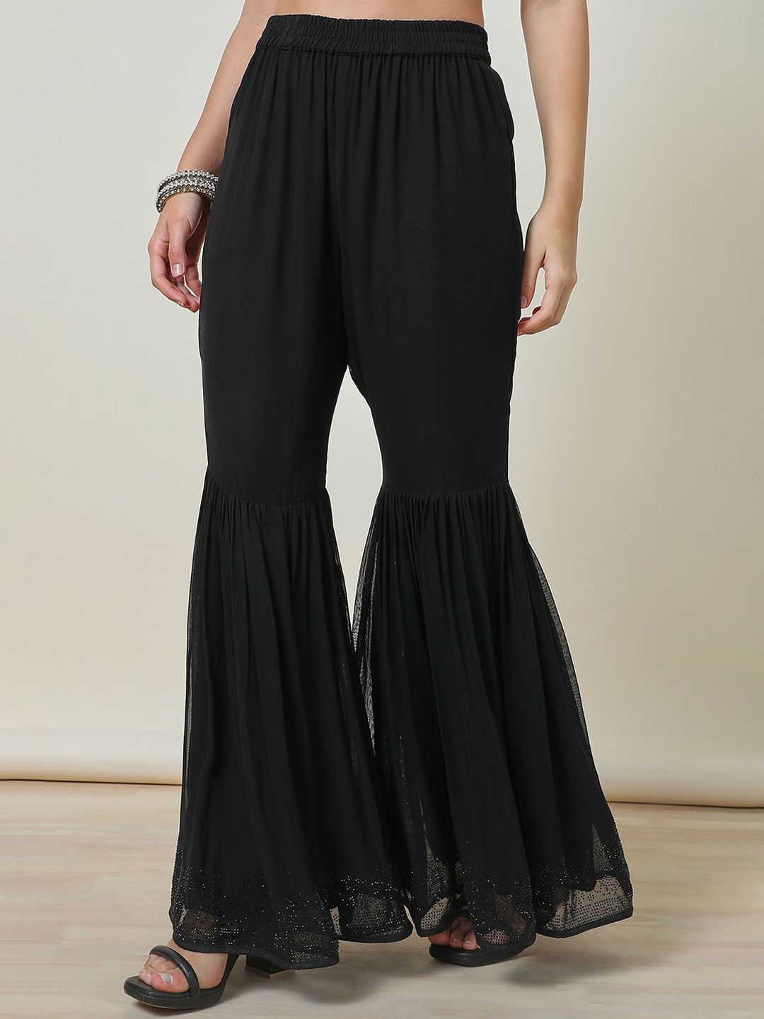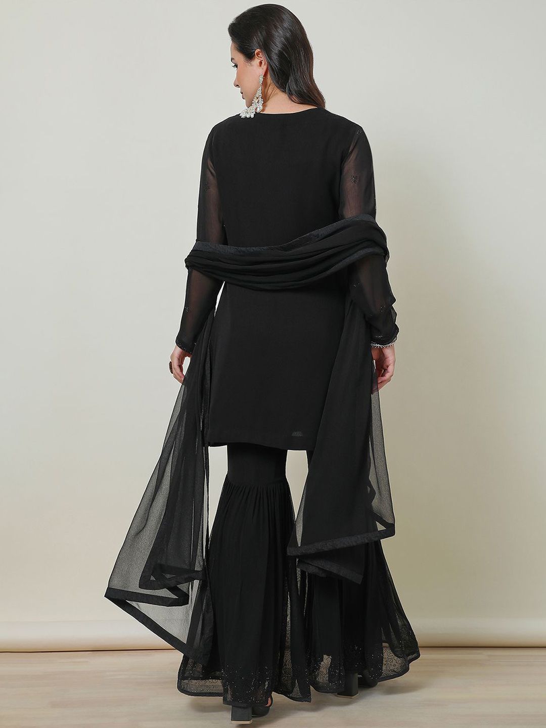 Black solid Kurta with Sharara with dupatta