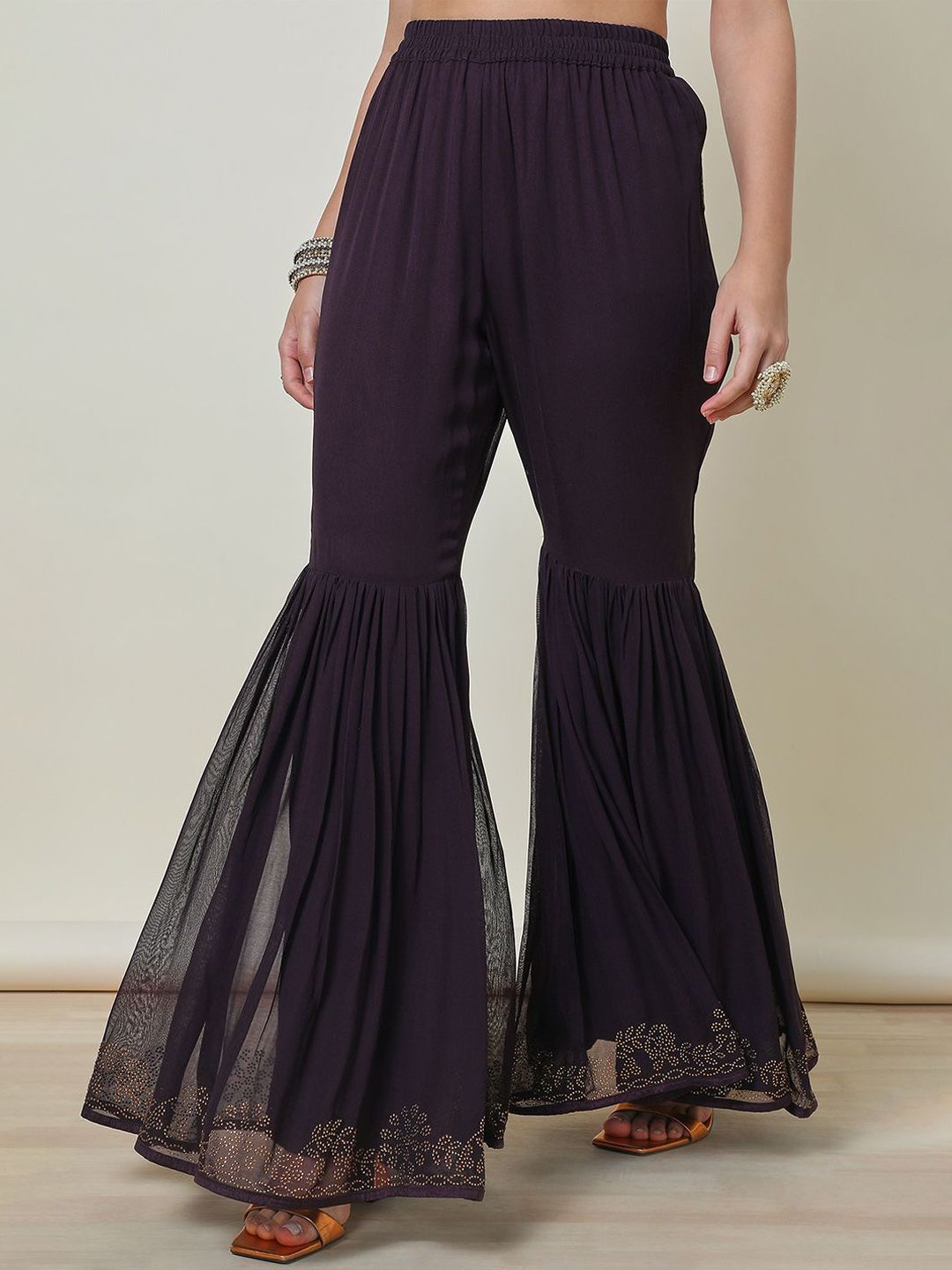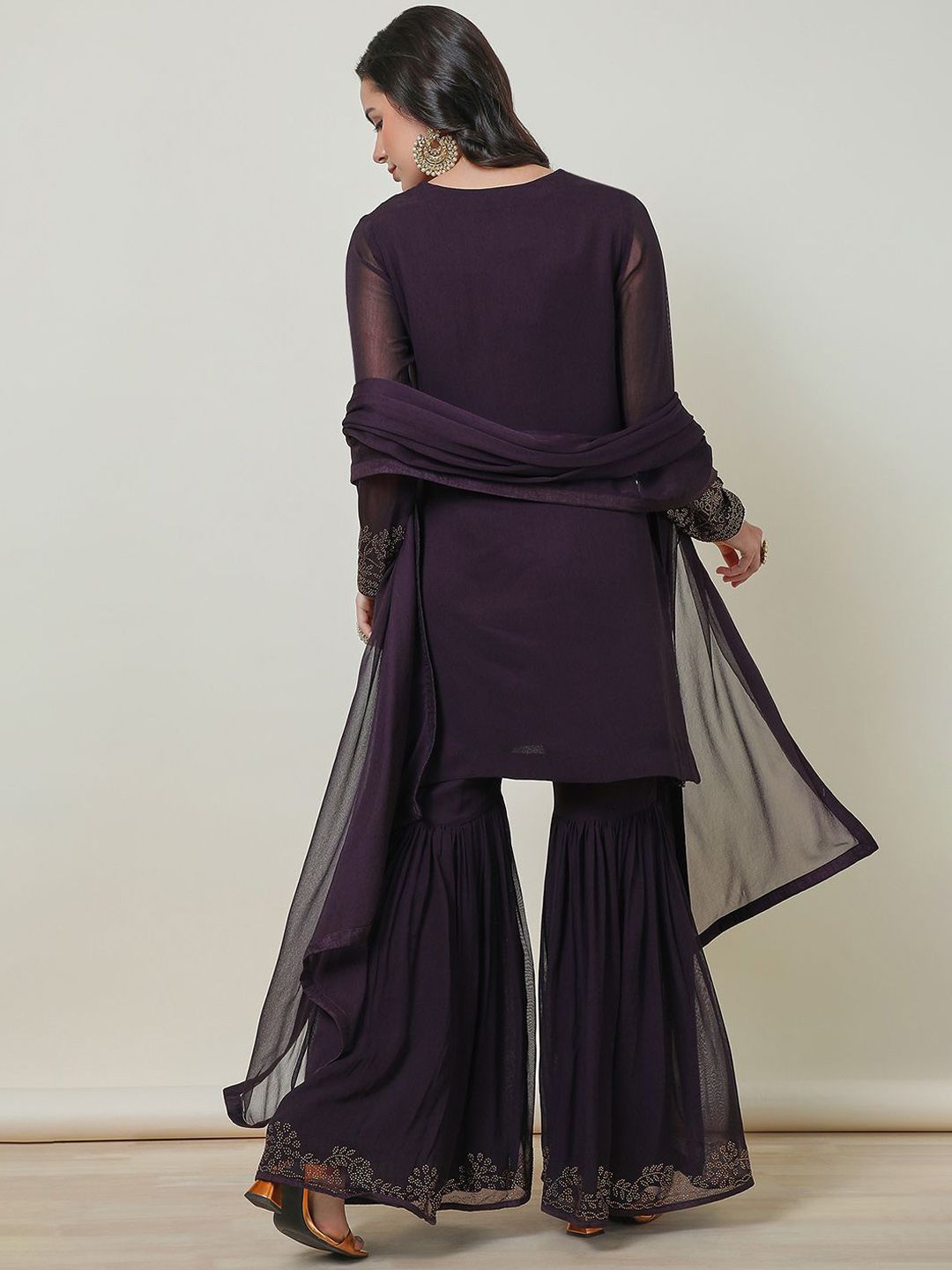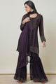 Purple & gold toned embellishd Kurta with Sharara with dupatta
