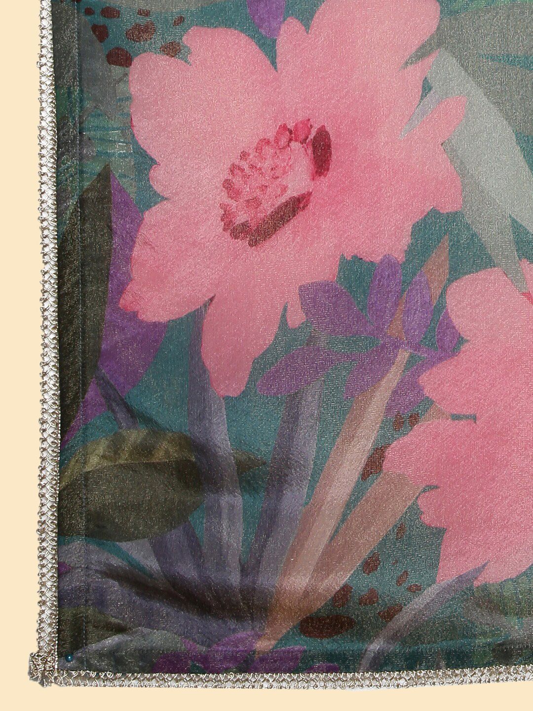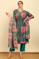 Dhiyona SO Women's Green Floral Printed Regular Beads & Stones Kurta With Trousers & Dupatta