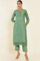 Dhiyona SO Women's Green Regular Straight Chanderi Silk Kurta With Trousers