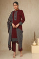 Maroon, grey and white woven design kurta with trouser and dupatta