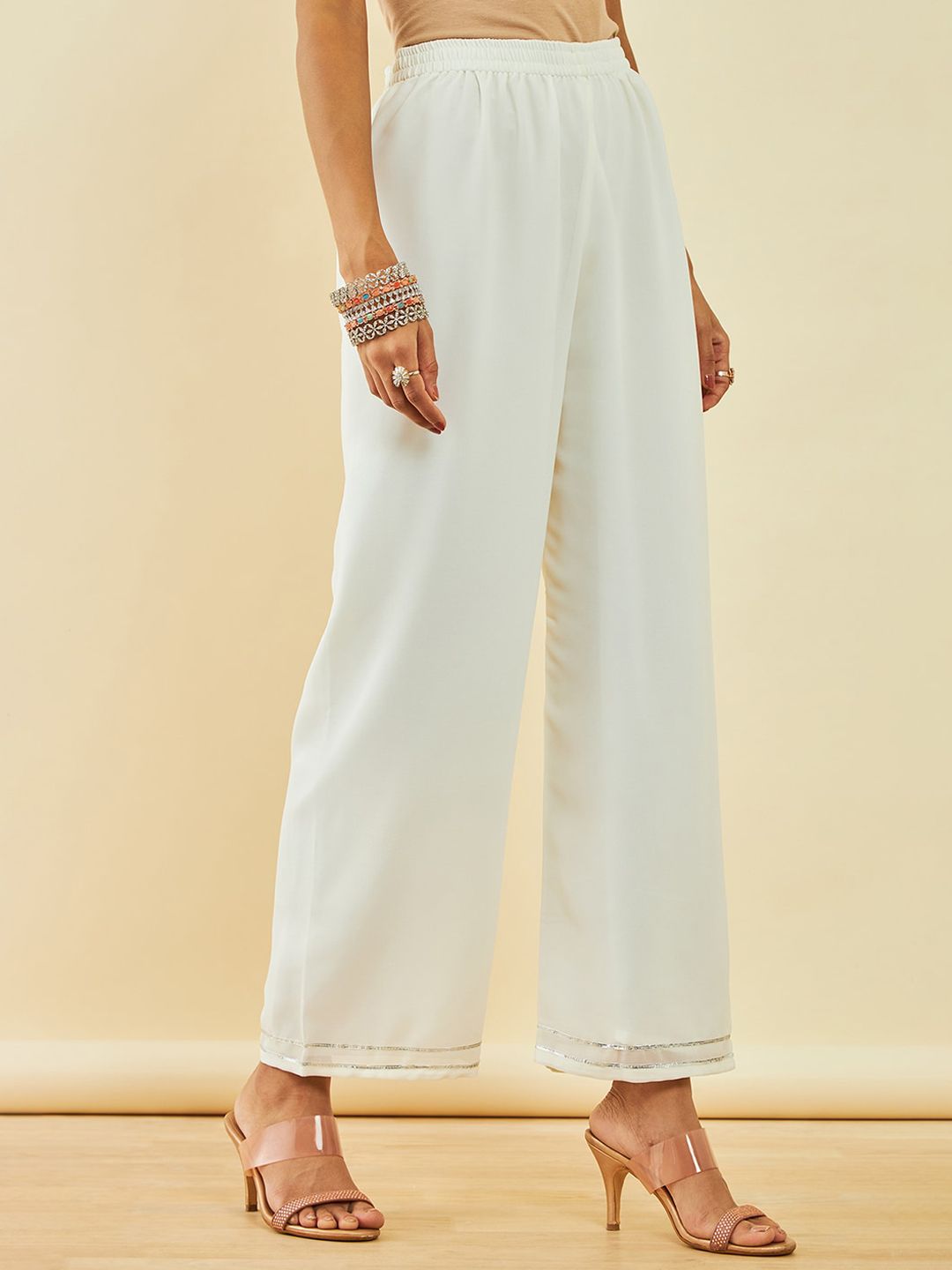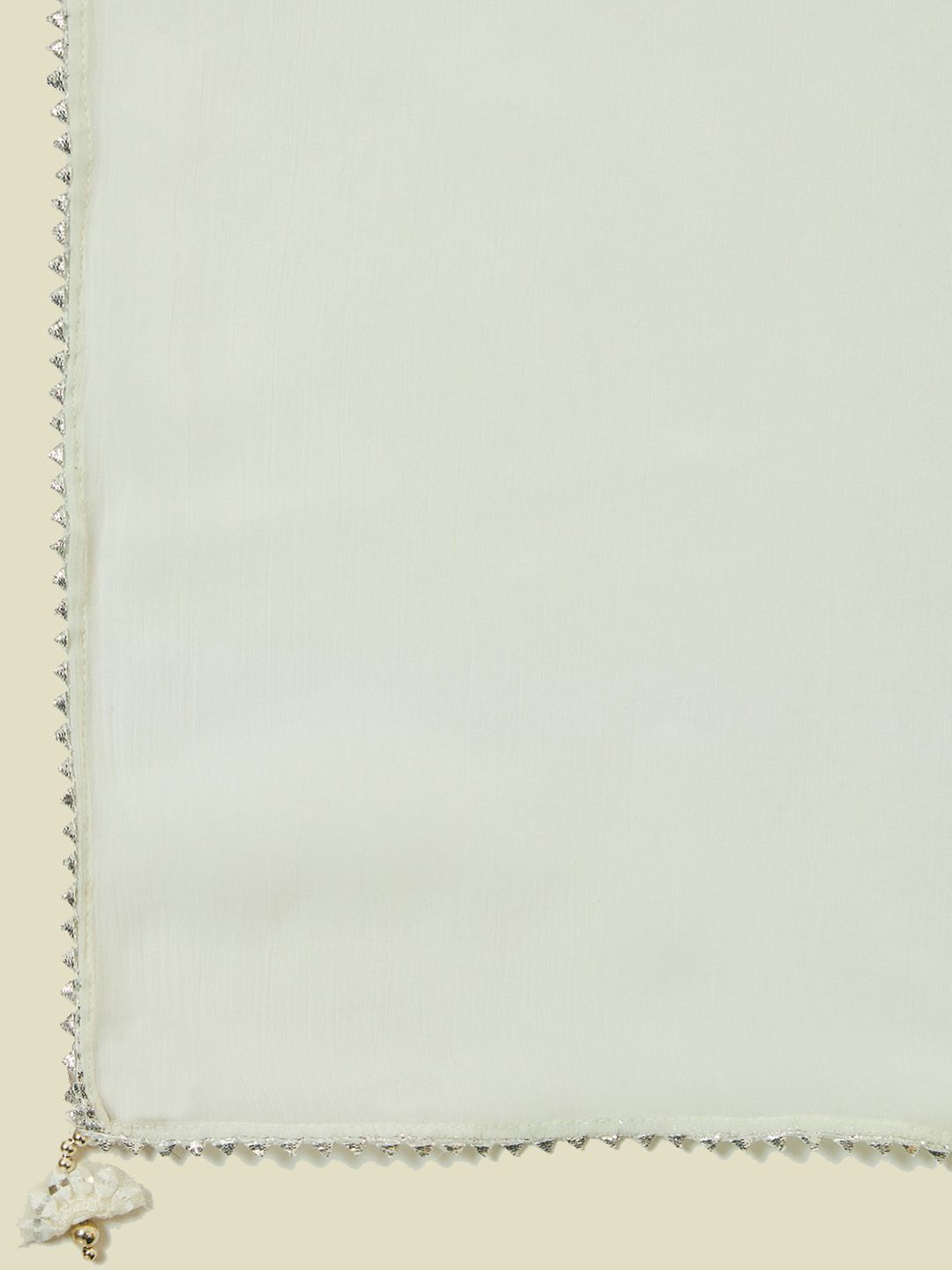Dhiyona SO Women's Off White Floral Embroidered Georgette Sequinned Kurta with Palazzos & With Dupatta