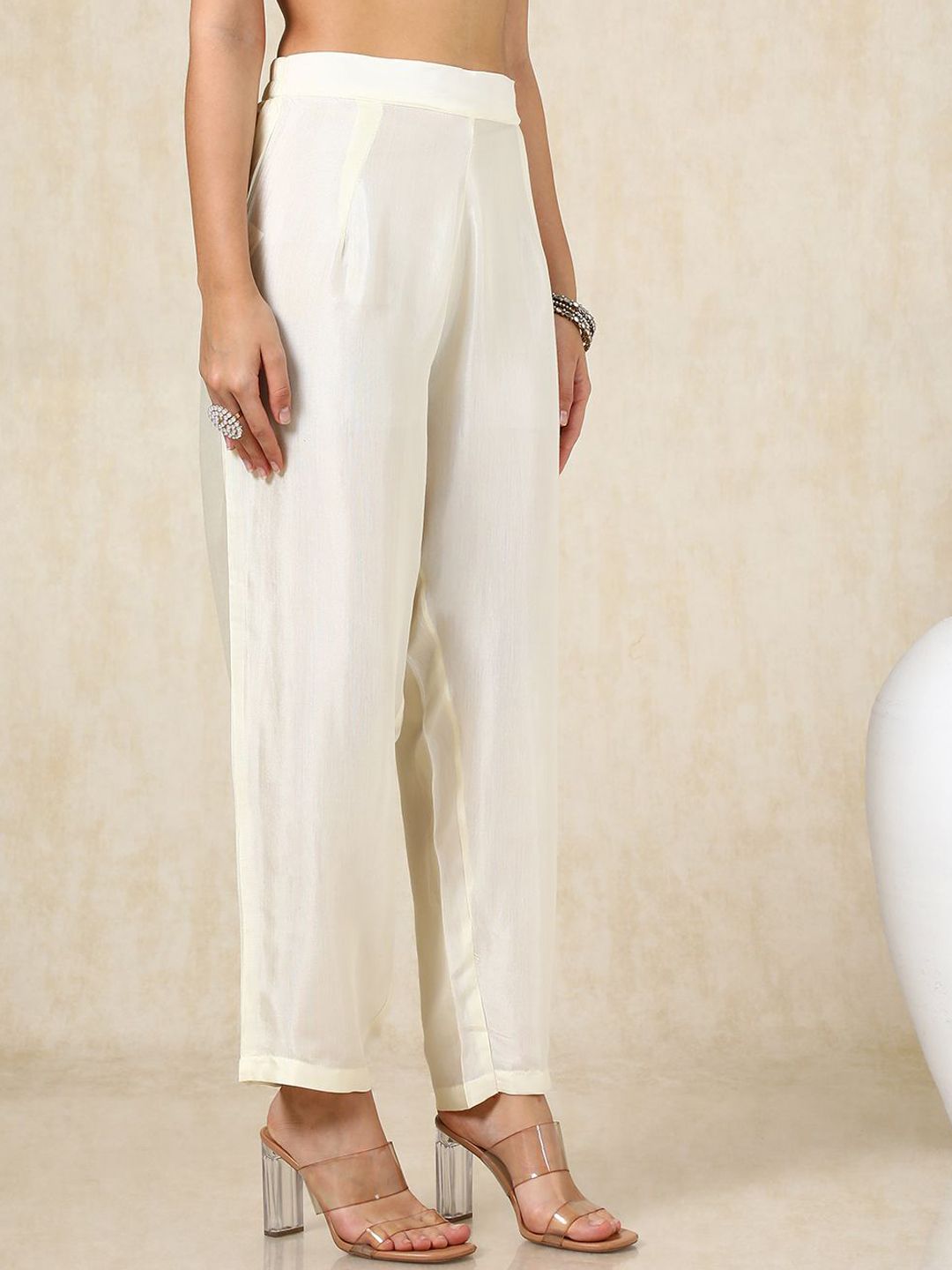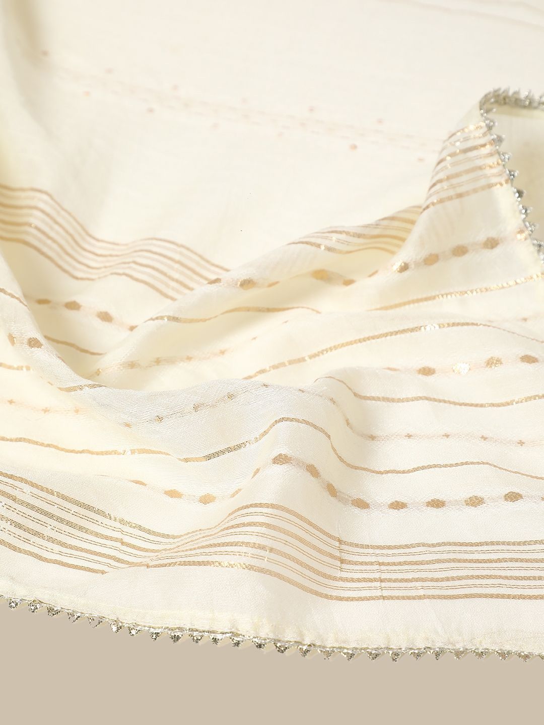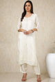 Dhiyona SO Women's Off White Floral Embroidered Round Neck Mirror Work Kurta With Trousers & Dupatta
