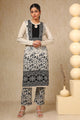 Dhiyona SO Women's Off White Floral Woven Design Keyhole Neck Acrylic Straight Kurta With Trouser