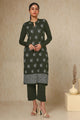 Olive green and white woven design kurta with trouser