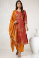 Dhiyona SO Women's Orange Floral Printed Round Neck Regular Sequinned Tissue Kurta & Trouser & Dupatta