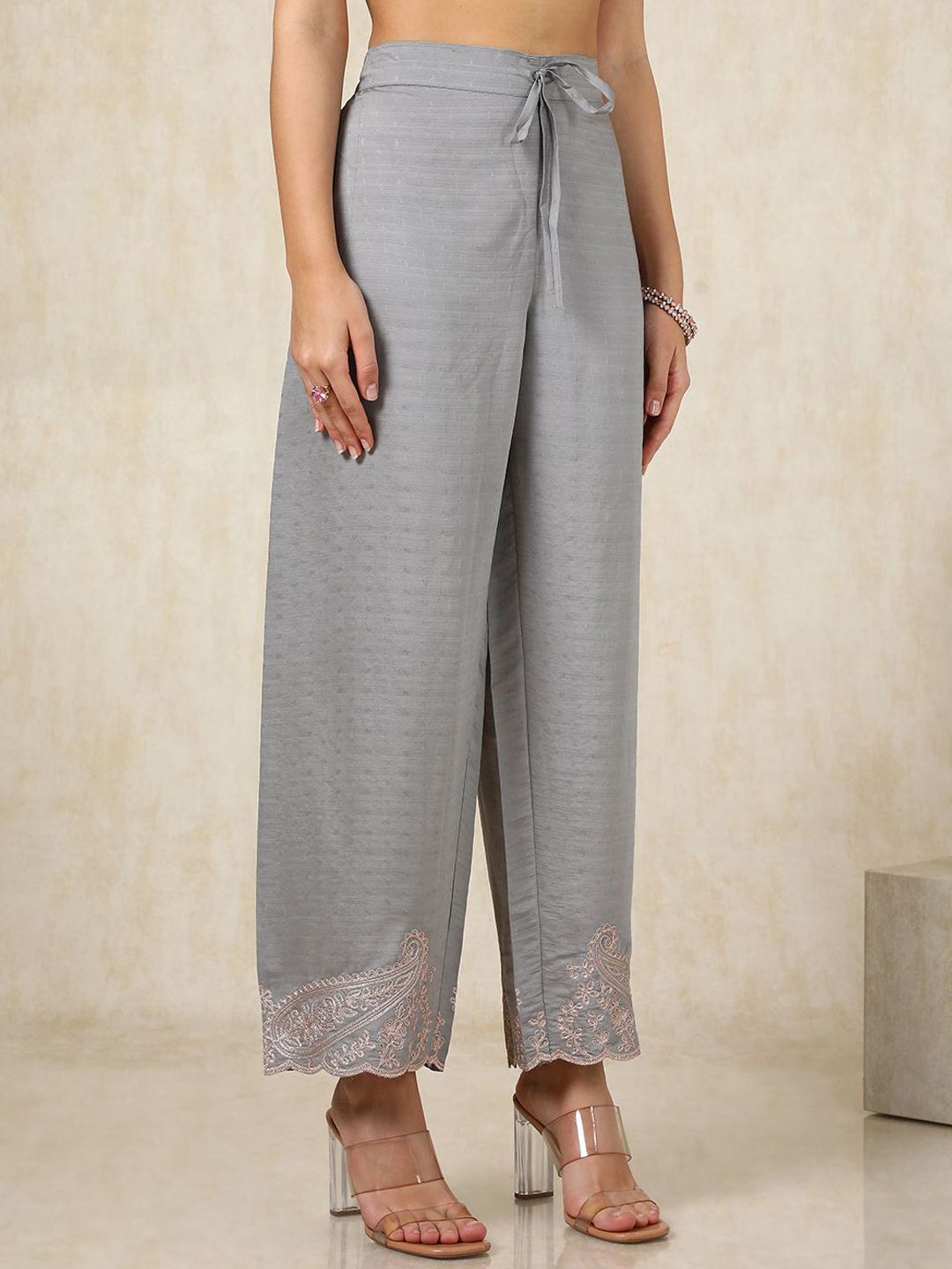 Grey & gold-toned embroidered Kurta with Palazzos