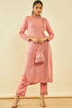 Dhiyona SO Women's Pink Self Design Regular Straight Kurta & Trousers With Potli Bag