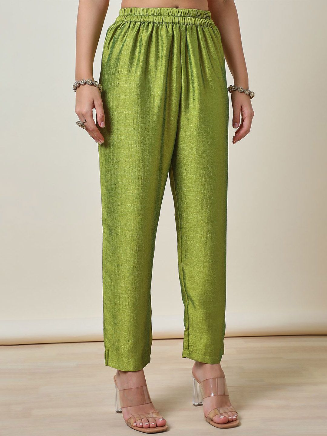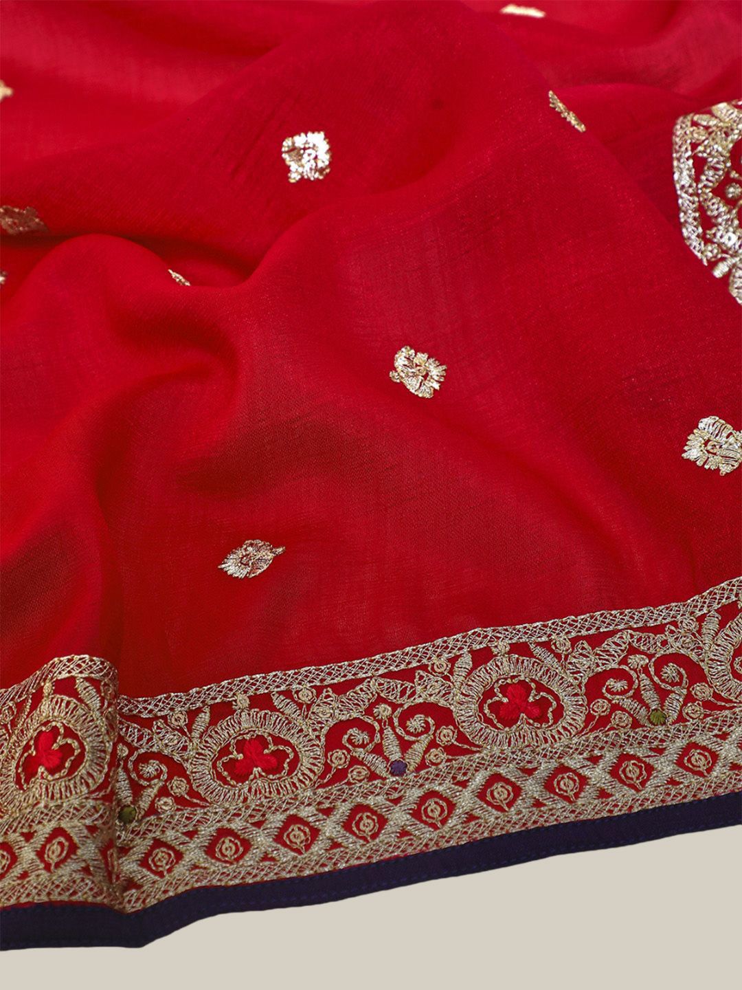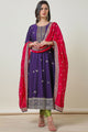Purple, red & gold-toned ethnic motifs embroidered a-line kurta with trousers & dupatta