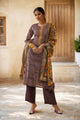 Dhiyona SO Women's Purple Geometric Printed Straight Kurta & Palazzos With Dupatta