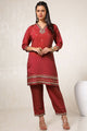 Dhiyona SO Women's Red Floral Embroidered Zari Straight Kurta With Trousers