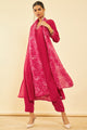 Pink & gold toned embroidered kurta with trousers & dupatta