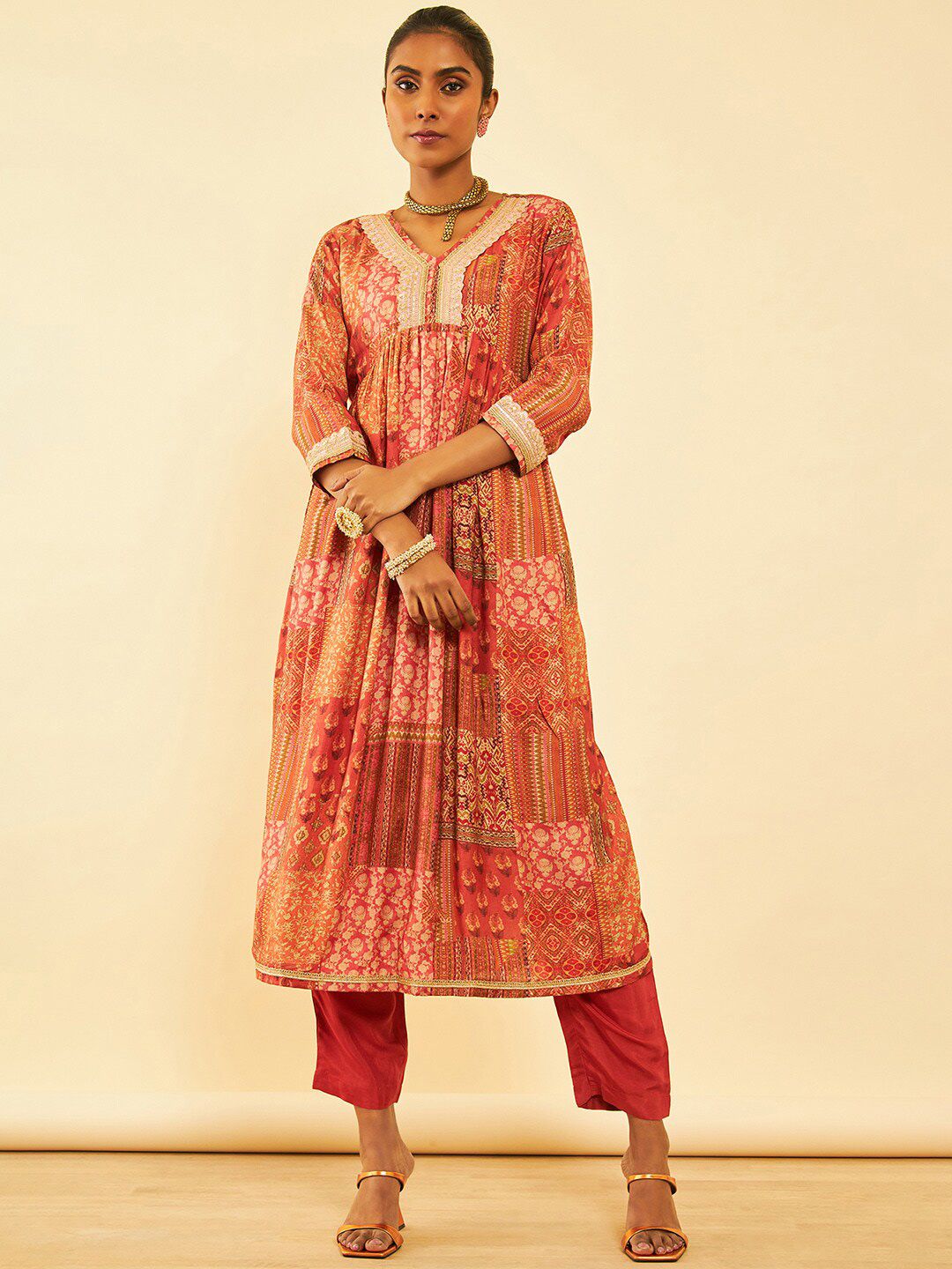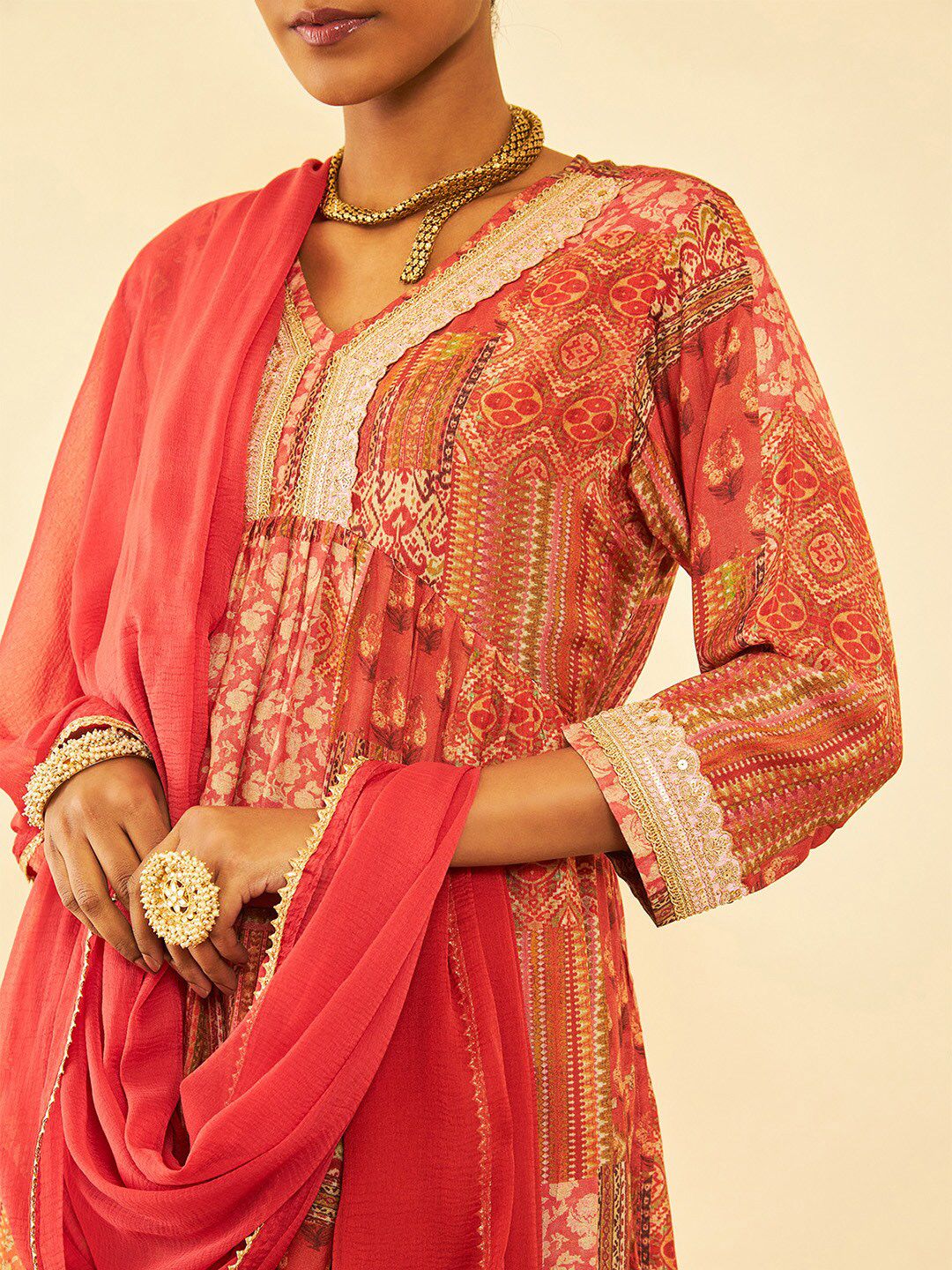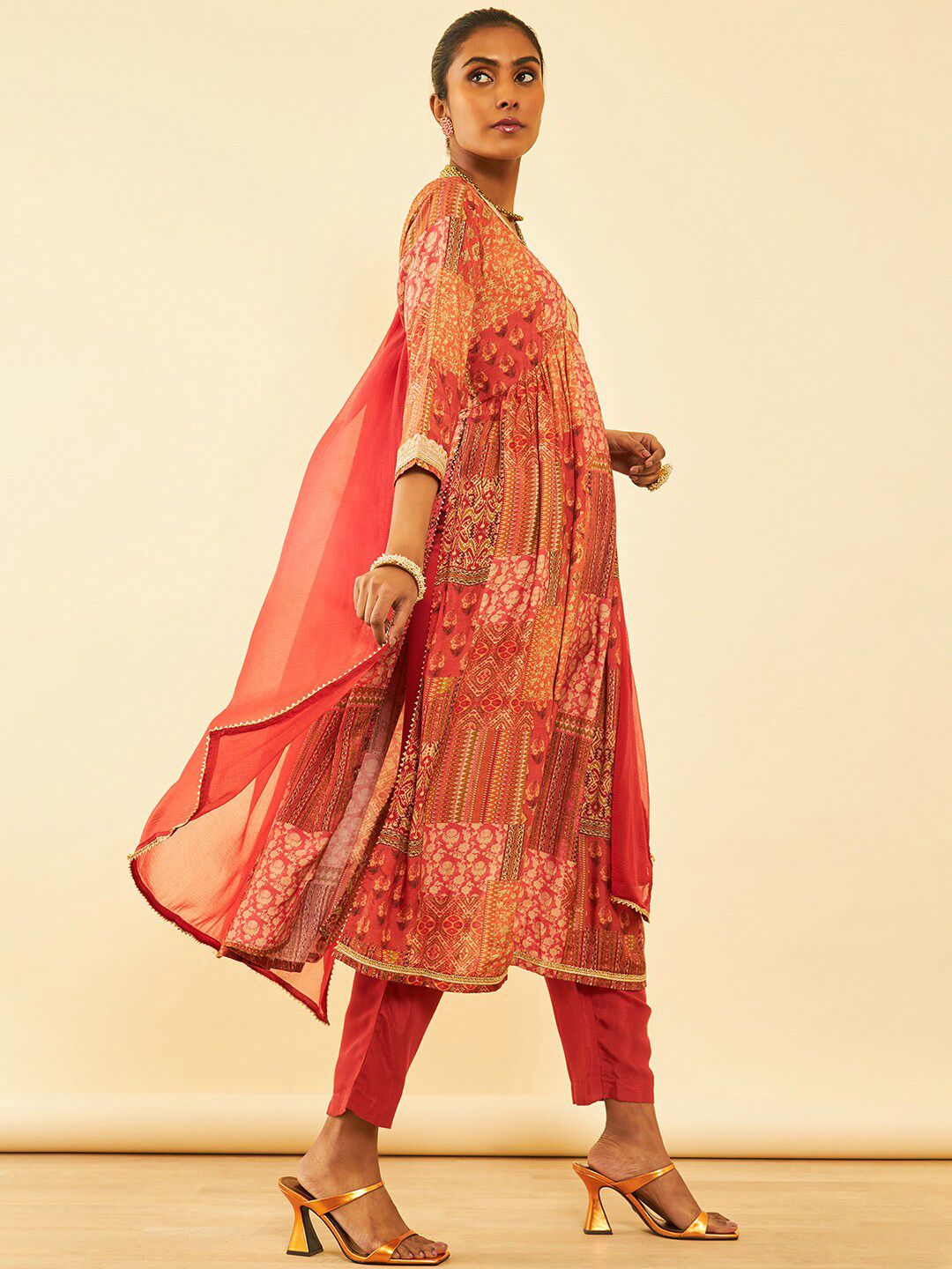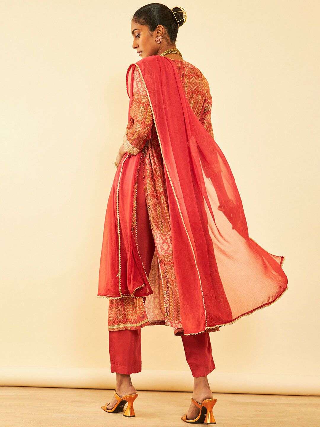 Dhiyona SO Women's Rust Printed Anarkali Kurta with Trousers & Dupatta