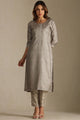 Dhiyona SO Women's Self Design Round Neck Sequinned Straight Kurta With Trousers