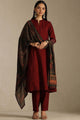 Maroon,orange and black woven design kurta with trousers and dupatta