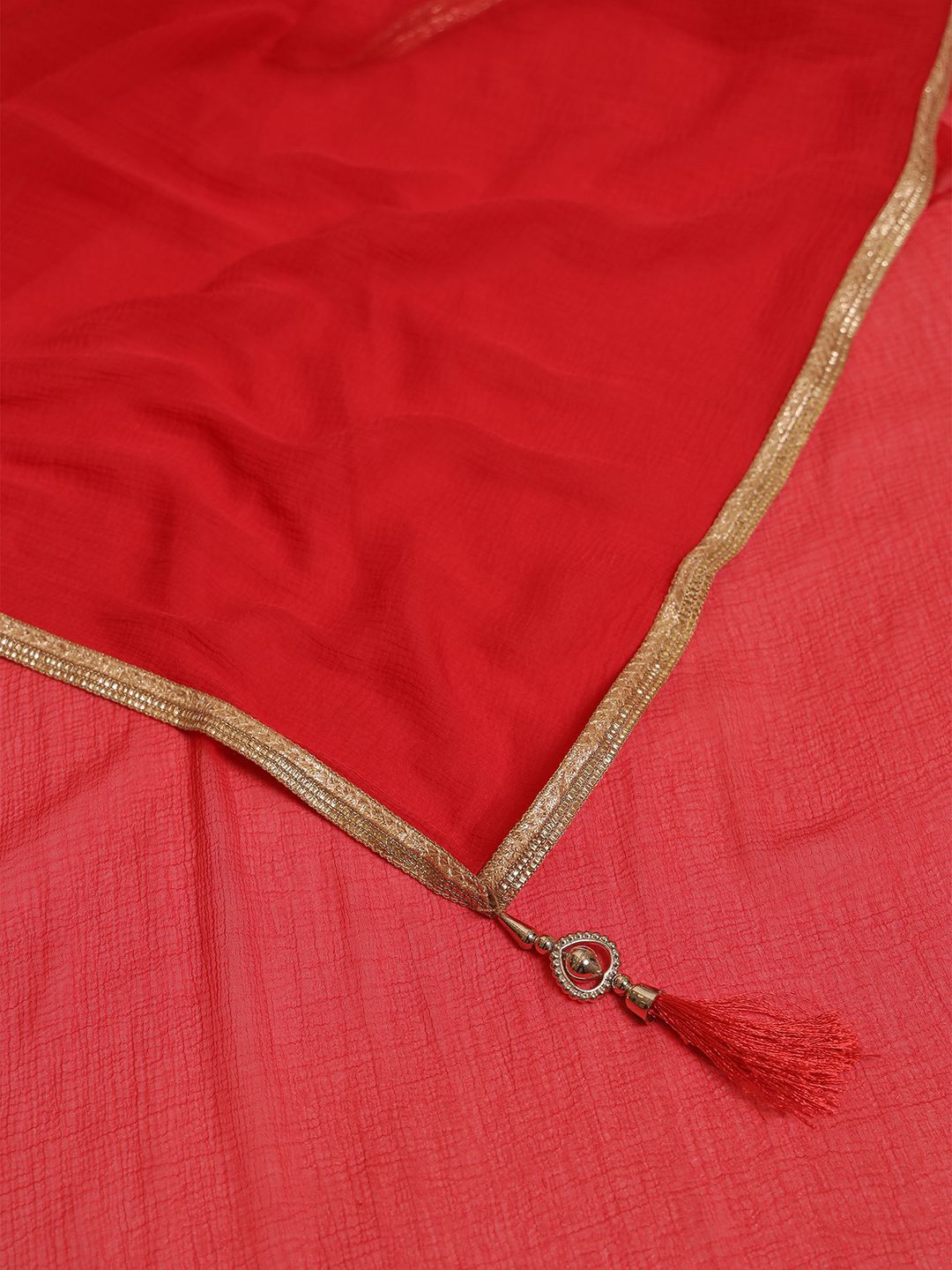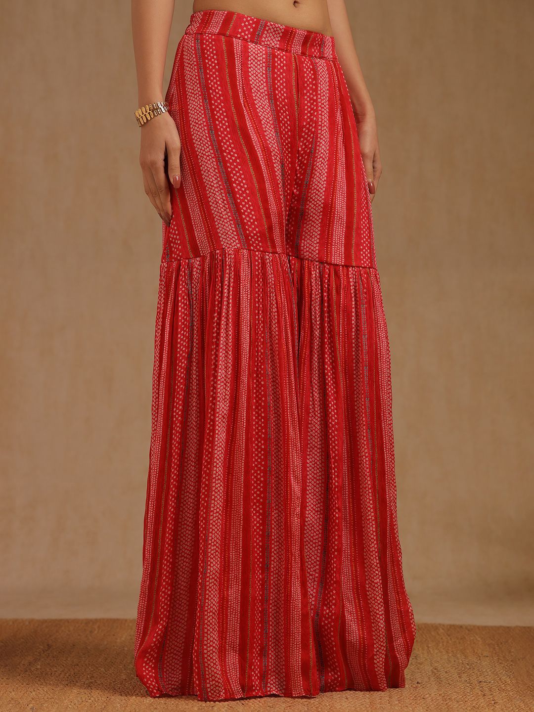 Dhiyona SO Women's Women Bandhani Printed Zardozi Sleeveless Straight Kurta with Sharara & Dupatta