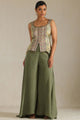 Olive green embroidered Top with Palazzos with dupatta