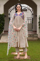 Dhiyona TI Women's Beige Parsi Embroidered Flared Kurta and Pants with Dupatta