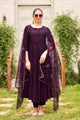 Dhiyona TI Women's Burgundy Poly Crepe Solid Flared Kurta with Pant and Dupatta