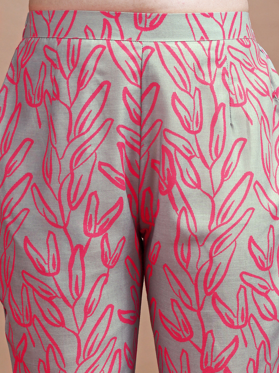Dhiyona TI Women's Dusty Grey Hakoba Printed Kurta with Pant