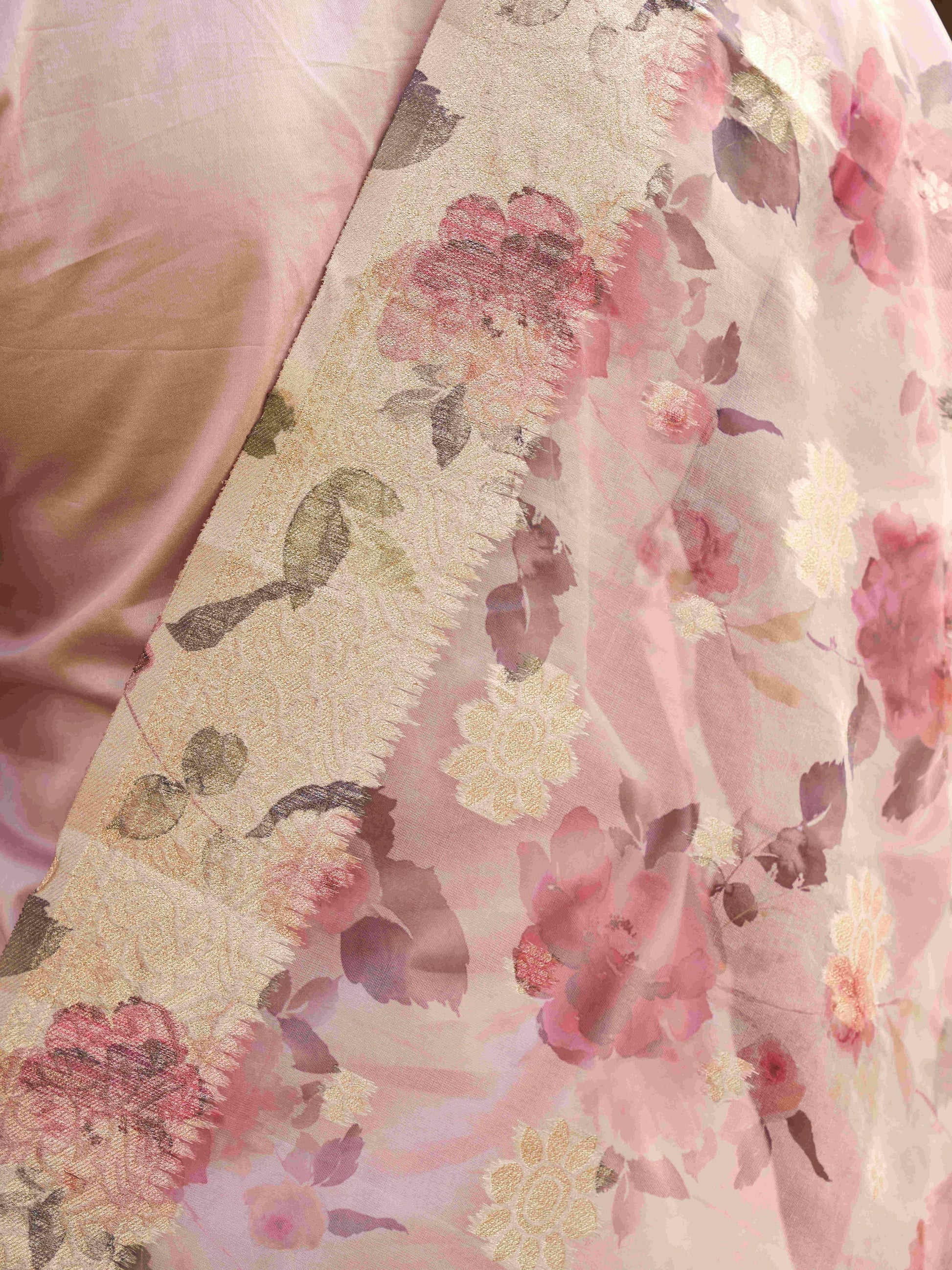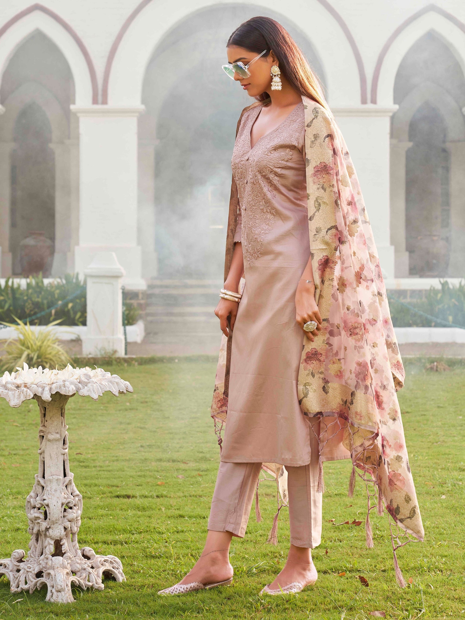 Dhiyona TI Women's Mauve Embroidery Kurta with Organza Dupatta