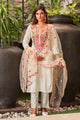 Dhiyona TI Women's Off White Cotton Kurta With Parsi Work Neck And Embroidered Dupatta