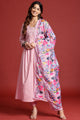 Dhiyona TI Women's Rose Pink Tonal Thread Embroidered Alia Cut Kurta With Pant & Dupatta