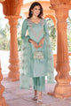 Dhiyona TI Women's Sea Green Embroidery Kurta with Trouser & Dupatta