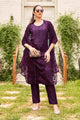 Dhiyona TI Women's Wine Silk Blend Tonal Thread Straight Cut Kurta with Pant and Dupatta