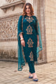 Dhiyona TI Women's Women Teal Cotton Blend Embroidered Kurta with Pant and Dupatta