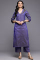 Dhiyona VR Women's Blue Jacquard V Neck Kurta With Bottom And Dupatta