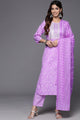 Dhiyona VR Women's Lavender Floral Printed Embroidered Kurta Paired With Bottom And Dupatta