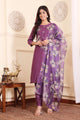 Dhiyona VR Women's Lavender Silk Floral Printed Stones Embellished Kurta Set With Dupatta