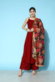 Dhiyona VR Women's Maroon Strap Style A Line Kurta Paired With Tonal Bottom And Contrast Floral Printed Dupatta With Four Sided Fringes