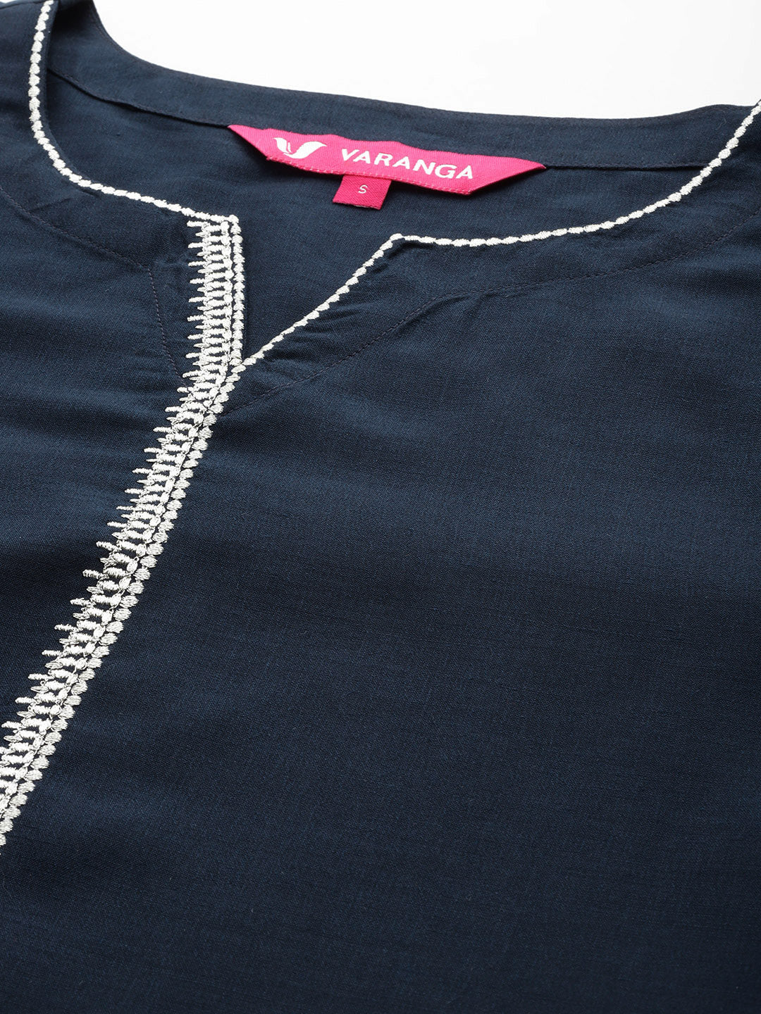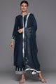 Dhiyona Navy Blue Embroidered Straight Kurta Paired With Tonal Bottom And Dotted Dupatta With Four Sided Fringes